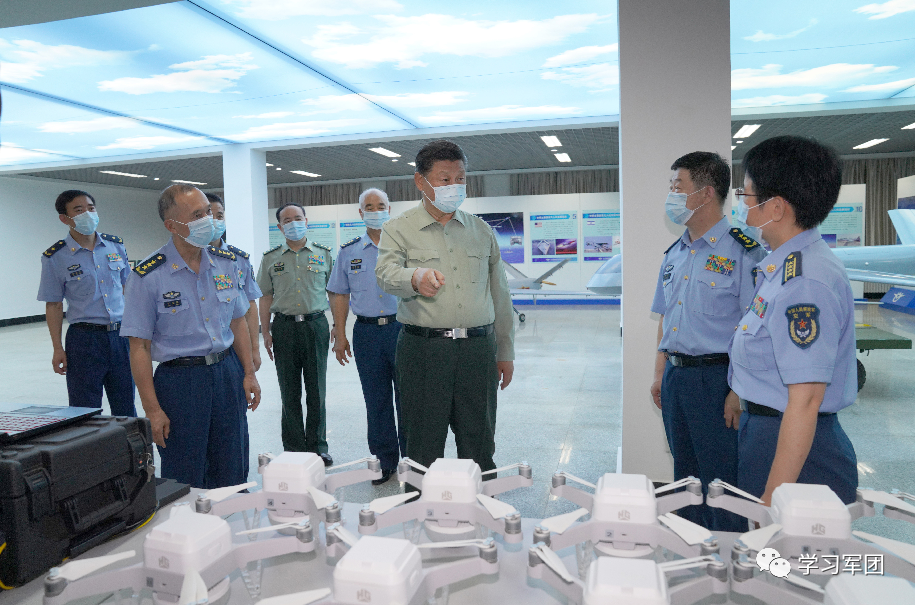 随后,习近平来到无人机实验室,察看无人机操控教学设施,了解无人机操控员培养情况。习近平说,现在各类无人机系统大量出现,无人作战正在深刻改变战争面貌。要加强无人作战研究,加强无人机专业建设,加强实战化教育训练,加快培养无人机运用和指挥人才。
