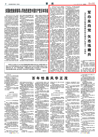 全军官兵以优异成绩庆祝中国共产党成立100周年