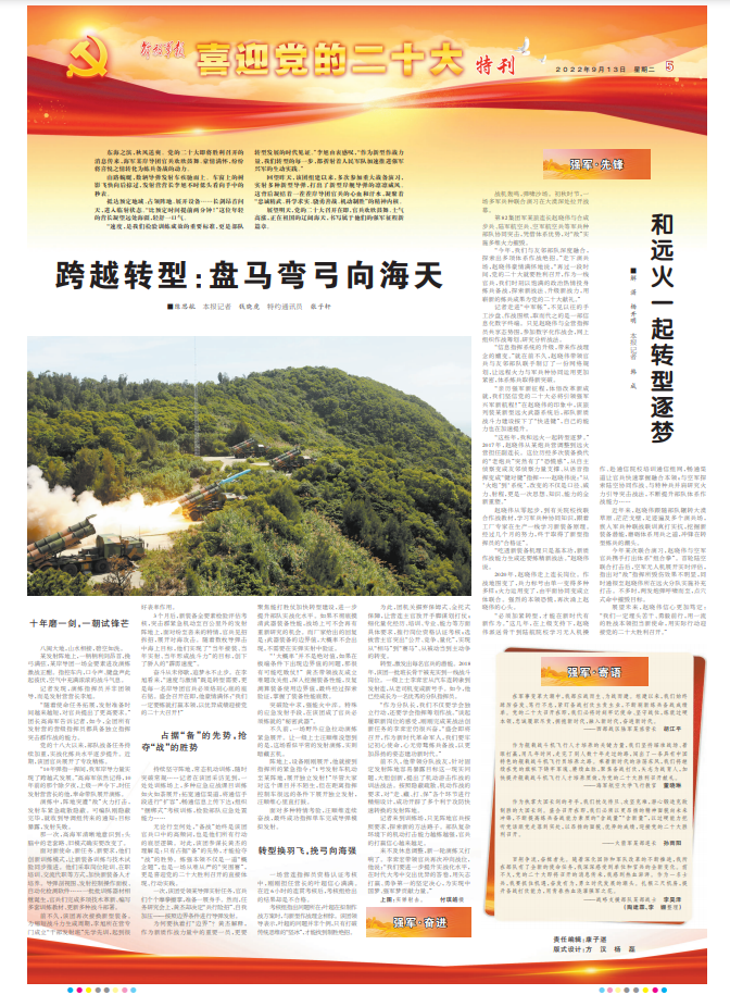 展望明天,党的二十大召开在即,官兵欢欣鼓舞、士气高涨,正在祖国的辽阔海天,书写属于他们的强军征程新篇章。