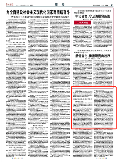党的二十大报告给全党全军全国各族人民以强大的信仰感召、方向指引、精神鼓舞,是党团结带领人民奋进新征程、夺取新胜利的政治宣言。