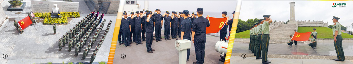 图①、②、③分别为西藏军区某旅、海军某部、武警安顺支队组织重温入党誓词活动。
