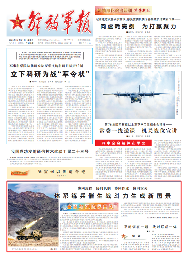 得益于体系练兵,海军参谋坐上空军战机、空军参谋登上海军舰船、陆军参谋走进空军塔台……这些场景,已成为体系练兵的常态。“体系练兵,不仅让我们在读懂对方的同时找到己方的‘更优解’,而且为加速部队战斗力生成开辟出更多新路径。”王参谋说。