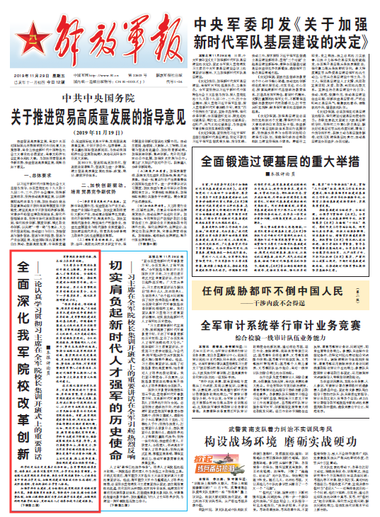 “惟改革者进,惟创新者强,惟改革创新者胜。”主动适应军队建设和战争需要进行改革创新,是军事院校建设发展的基本规律。伴随着新中国成立以来的我军历次转型重塑,军事院校建设发展每一次大的跃升,无不是通过深化改革创新来实现的。今天的院校格局,将塑造明天人才的样子,事关未来战争的结局。坚持全面深化我军院校改革创新,落实院校优先发展战略,更加注重院校改革的系统性、整体性、协同性,对重构重塑新型军事人才培养体系、为新时代强军事业提供人才保证和智力支持具有重大而深远的意义。