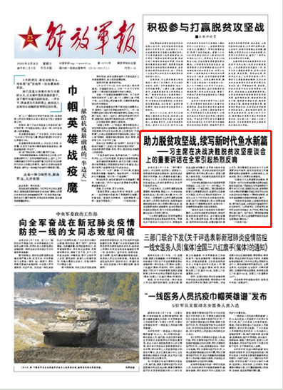 ——习主席在决战决胜脱贫攻坚座谈会上的重要讲话在全军引起热烈反响