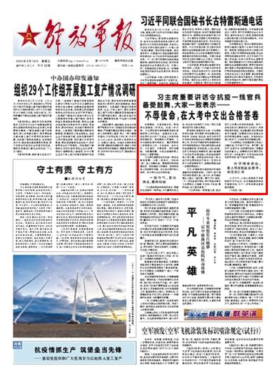 习主席重要讲话令抗疫一线官兵备受鼓舞,大家一致表示——
