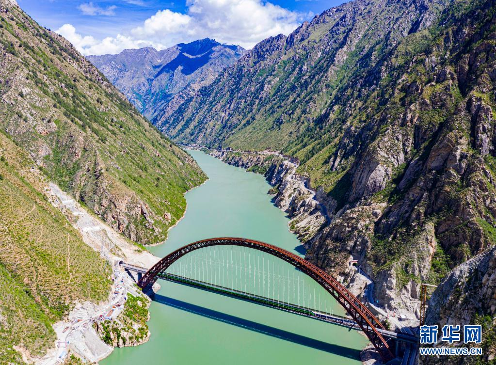 6月25日,全长435公里、设计时速160公里的拉林铁路建成通车,西藏首条电气化铁路建成,同时复兴号实现对31个省区市全覆盖。这是试运行的复兴号列车行驶在藏木特大桥(无人机照片,6月17日摄)。新华社记者 普布扎西 摄