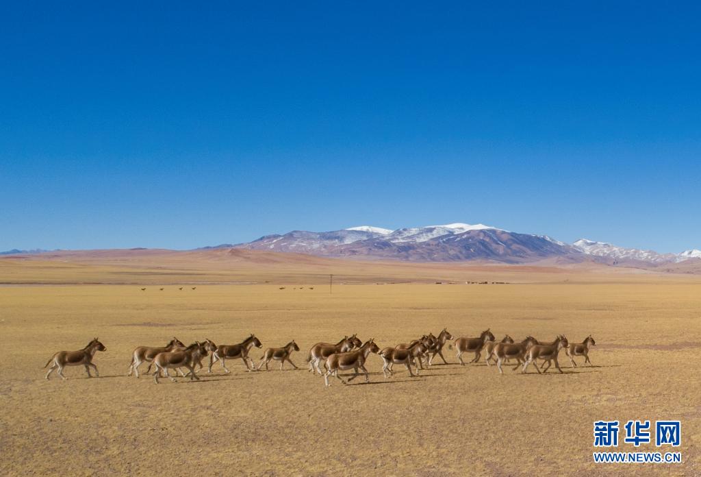 这是在西藏羌塘国家级自然保护区拍摄的藏野驴(无人机照片,2019年12月23日摄)。新华社记者 孙非 摄