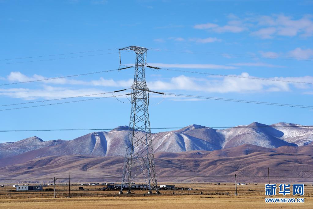 这是在西藏阿里地区普兰县拍摄的西藏阿里与藏中电网联网工程输电铁塔(2020年11月29日摄)。新华社记者 詹彦 摄