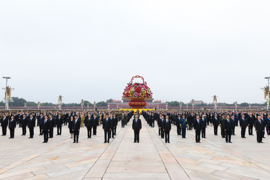 9月30日上午,党和国家领导人习近平、李克强、栗战书、汪洋、王沪宁、赵乐际、韩正、王岐山等来到北京天安门广场,出席烈士纪念日向人民英雄敬献花篮仪式。新华社记者 饶爱民 摄
