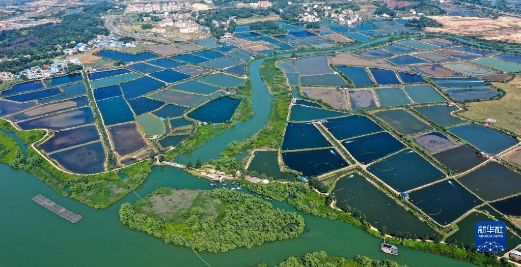这是广西钦州市钦南区沙埠镇船埠环村的冬日虾塘景色(11月25日摄,无人机照片)。新华社记者 张爱林 摄