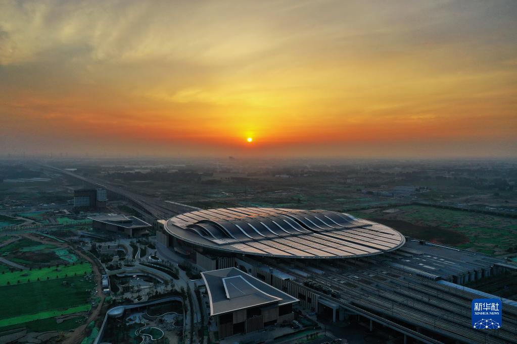这是京雄城际铁路雄安站(7月1日摄,无人机照片)。新华社记者 牟宇 摄