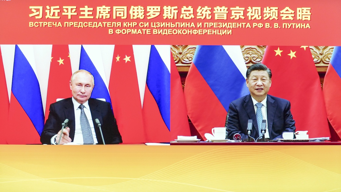 12月15日下午,国家主席习近平在北京同俄罗斯总统普京举行视频会晤。新华社记者 殷博古 摄