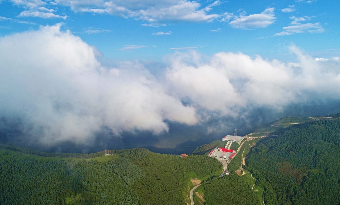位于宁夏固原市隆德县境内的六盘山红军长征纪念亭(2018年8月29日摄,无人机照片)。新华社记者 王鹏 摄