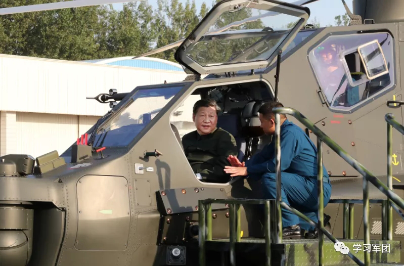 2018年9月27日,中共中央总书记、国家主席、中央军委主席习近平视察79集团军,登上直-10武装直升机,亲自操控机载武器及观瞄系统,了解有关装备情况。解放军报记者 周朝荣 摄