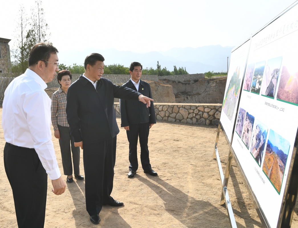 6月8日至10日,中共中央总书记、国家主席、中央军委主席习近平在宁夏考察。这是6月9日下午,习近平在银川市西夏区贺兰山东麓,听取贺兰山生态保护和环境综合整治情况汇报。新华社记者 谢环驰 摄