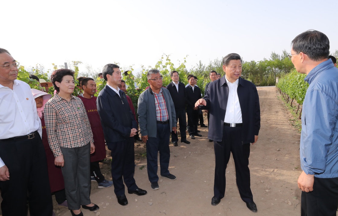 6月8日至10日,中共中央总书记、国家主席、中央军委主席习近平在宁夏考察。这是6月9日下午,习近平在银川市西夏区葡萄种植基地,同工人和技术人员交流。新华社记者 鞠鹏 摄