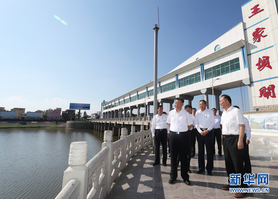 8月18日至21日,中共中央总书记、国家主席、中央军委主席习近平在安徽省考察。这是18日下午,习近平在阜阳市阜南县王家坝闸考察,了解安徽省防汛工作及王家坝开闸分洪情况。新华社记者 王晔 摄