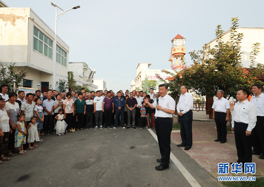 8月18日至21日,中共中央总书记、国家主席、中央军委主席习近平在安徽省考察。这是18日下午,习近平在阜阳市阜南县蒙洼蓄洪区曹集镇利民村西田坡庄台,看望慰问受灾群众。新华社记者 鞠鹏 摄