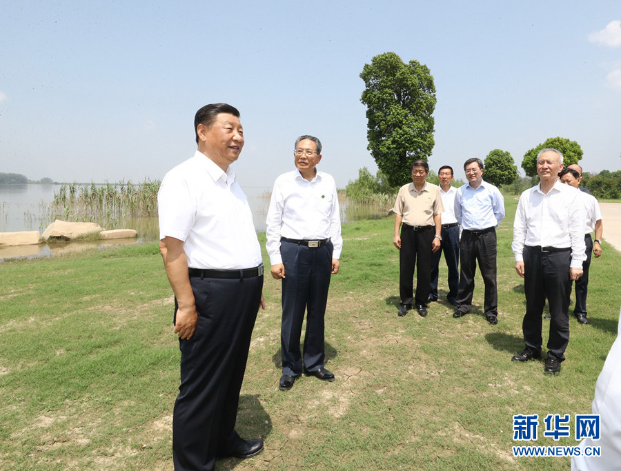 8月18日至21日,中共中央总书记、国家主席、中央军委主席习近平在安徽省考察。这是19日上午,习近平在马鞍山市薛家洼生态园,了解马鞍山市长江岸线综合整治和生态环境保护修复等情况。新华社记者 王晔 摄