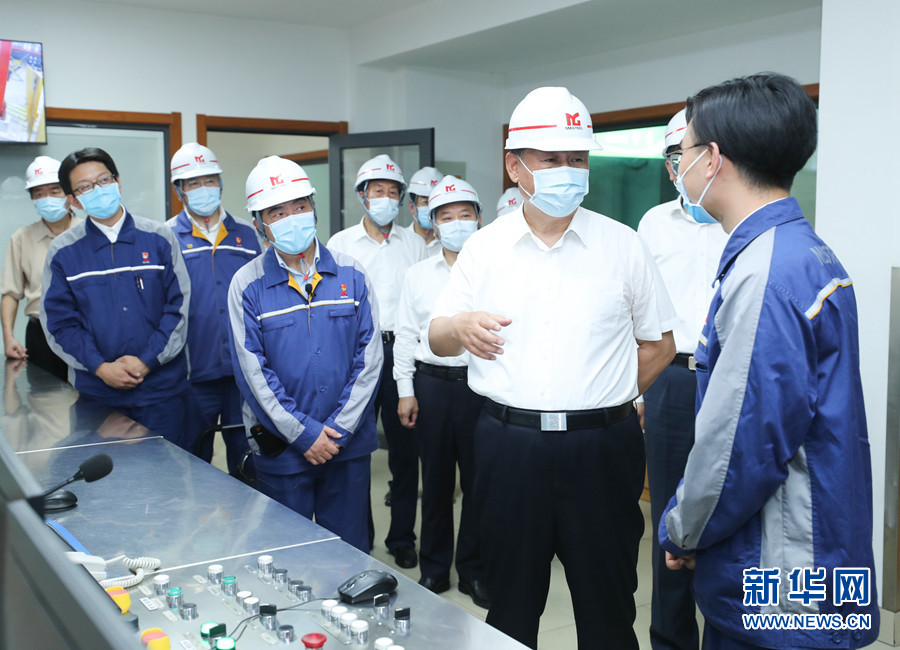 8月18日至21日,中共中央总书记、国家主席、中央军委主席习近平在安徽省考察。这是19日上午,习近平在马鞍山市中国宝武马钢集团优质合金棒材车间考察,了解企业复工复产和经营情况。新华社记者 王晔 摄