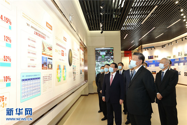 11月12日,浦东开发开放30周年庆祝大会在上海市举行。中共中央总书记、国家主席、中央军委主席习近平在会上发表重要讲话。这是当天上午,习近平等参观“在国家战略的引领下——浦东开发开放30周年主题展”。新华社记者 鞠鹏 摄