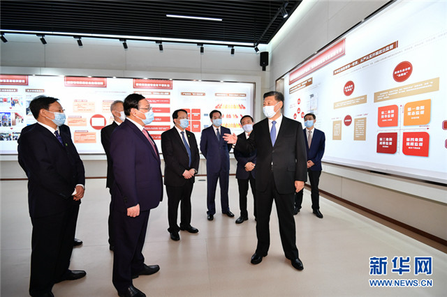 11月12日,浦东开发开放30周年庆祝大会在上海市举行。中共中央总书记、国家主席、中央军委主席习近平在会上发表重要讲话。这是当天上午,习近平等参观“在国家战略的引领下——浦东开发开放30周年主题展”。新华社记者 殷博古 摄