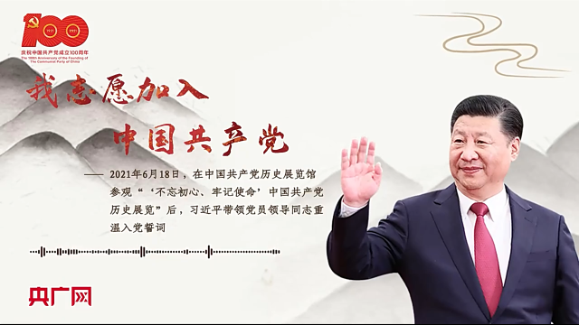 这是2021年6月18日,在中国共产党历史展览馆参观“‘不忘初心、牢记使命’中国共产党历史展览”后,习近平带领党员领导同志重温入党誓词。