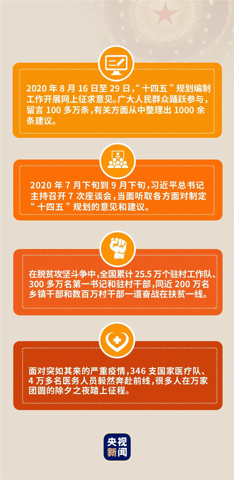 2020年10月,习近平总书记就《中共中央关于制定国民经济和社会发展第十四个五年规划和二〇三五年远景目标的建议》起草的有关情况向十九届五中全会作说明时强调,“要把加强顶层设计和坚持问计于民统一起来,鼓励广大人民群众和社会各界以各种方式为‘十四五’规划建言献策。”