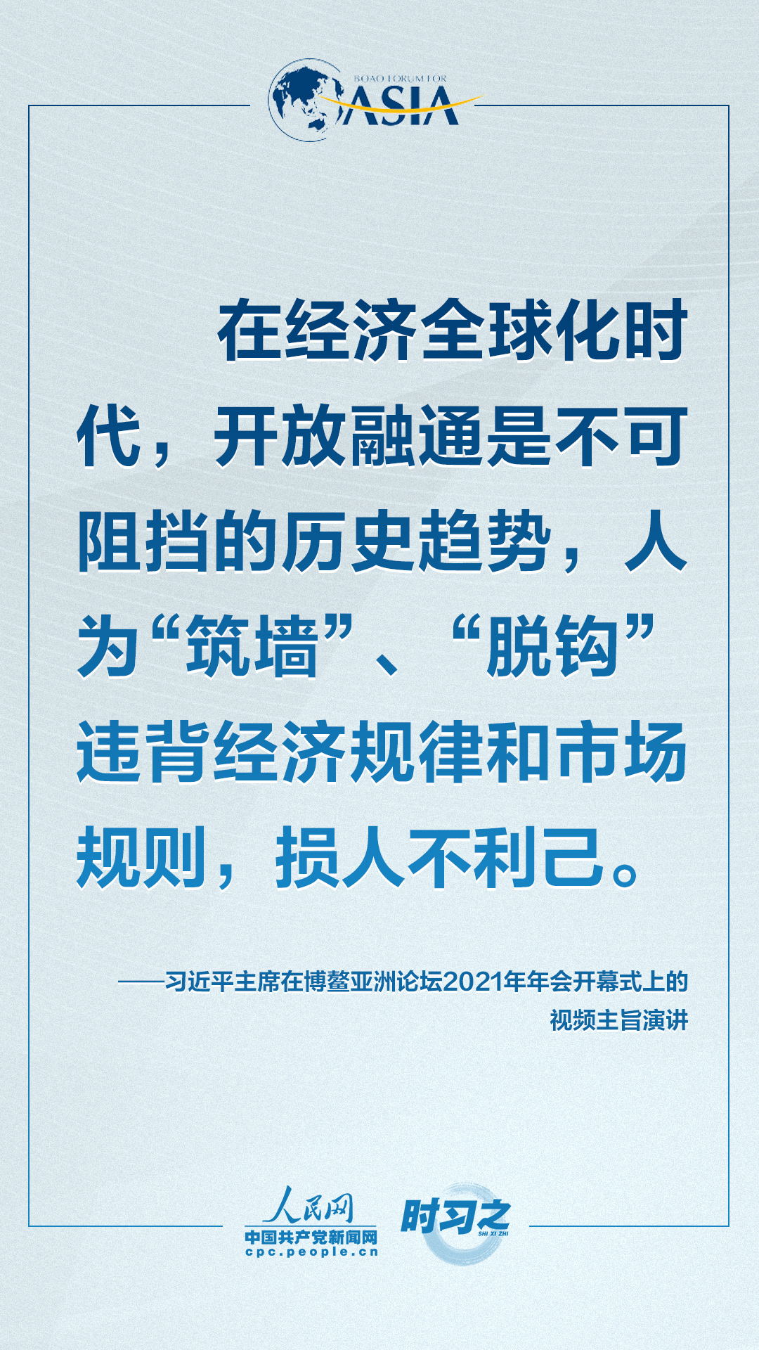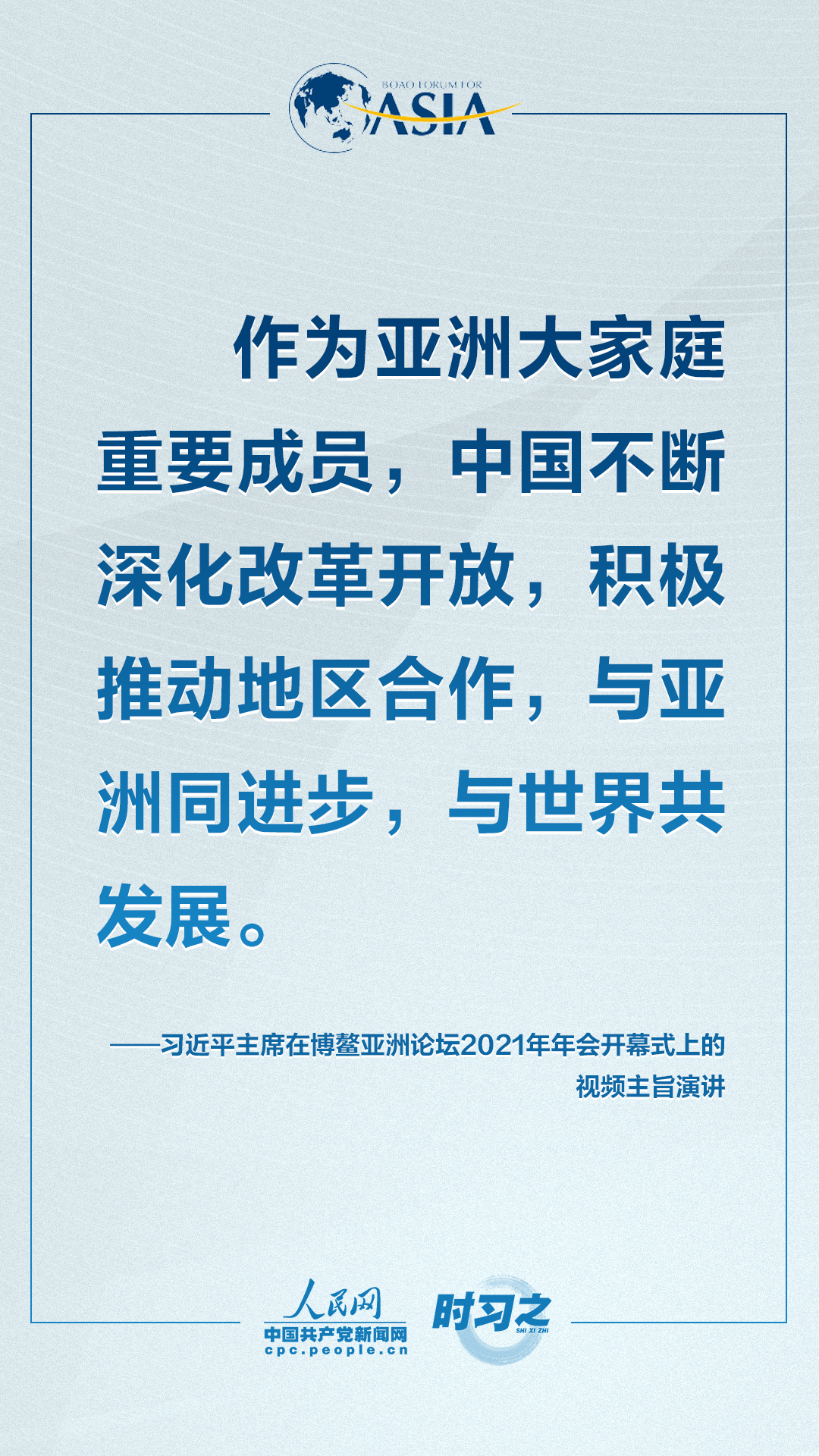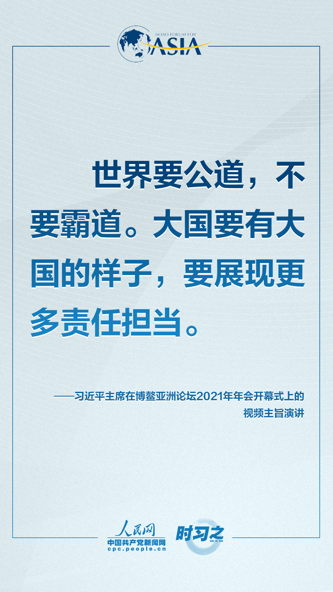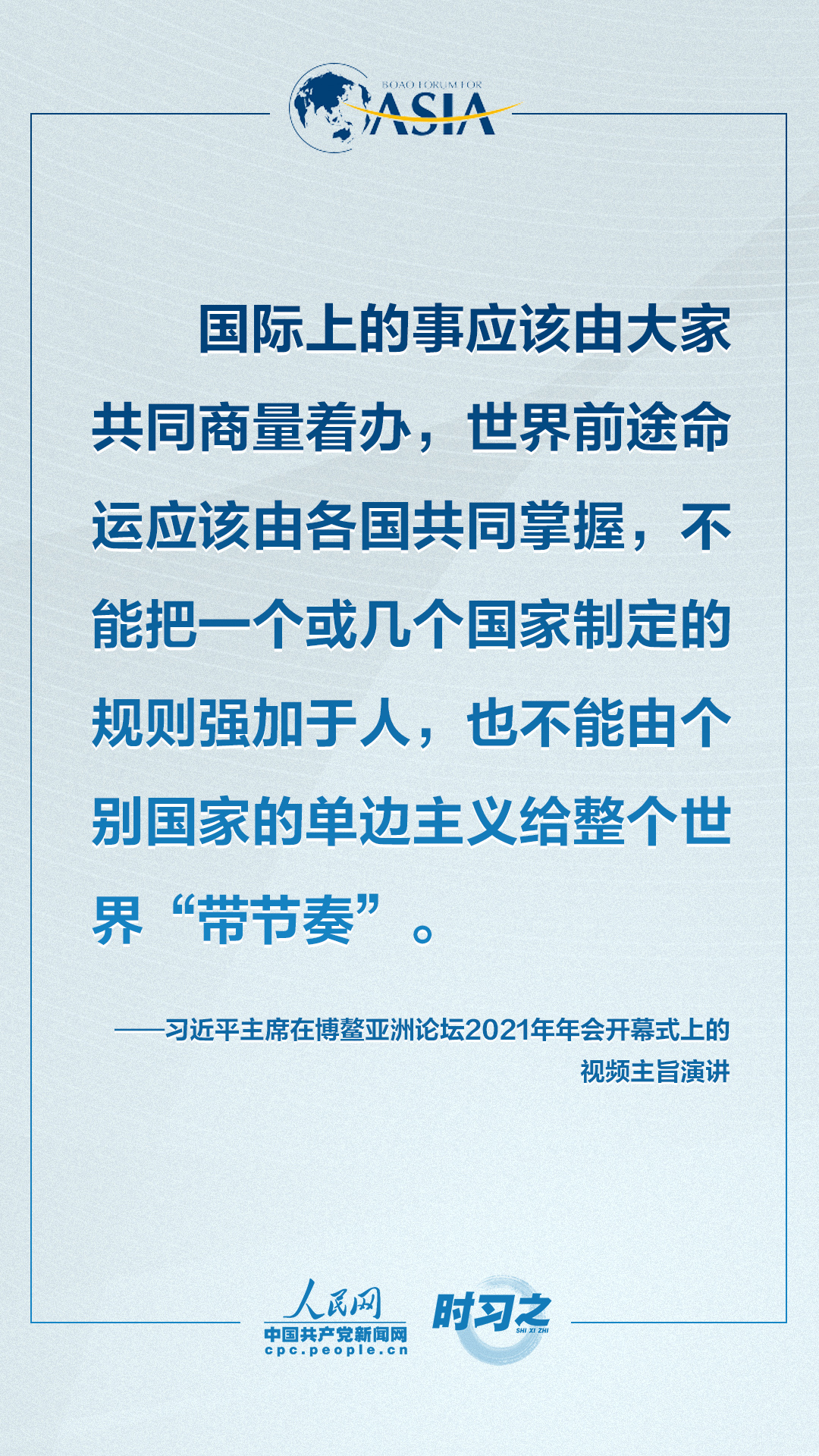 4月20日上午,博鳌亚洲论坛2021年年会开幕式在海南博鳌举行,国家主席习近平以视频方式发表题为《同舟共济克时艰,命运与共创未来》的主旨演讲。面对“人类社会应该向何处去?我们应该为子孙后代创造一个什么样的未来?”的重大命题,习近平这样对世界说。