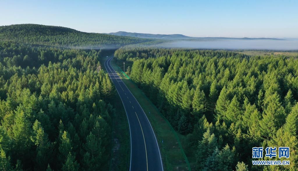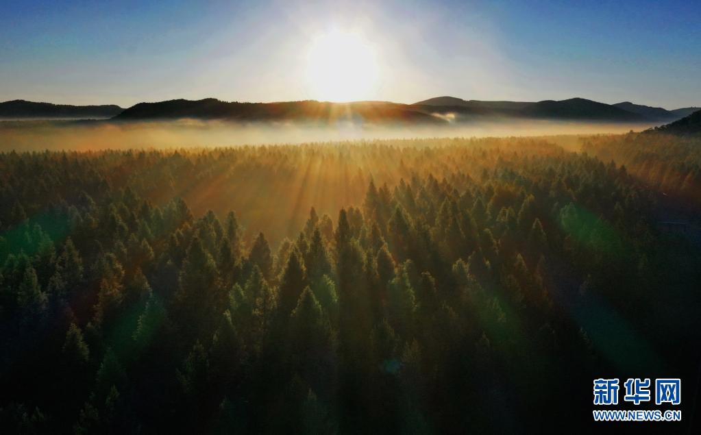 2021年6月27日拍摄的塞罕坝国家森林公园晨景(无人机照片)。新华社记者 杨世尧 摄