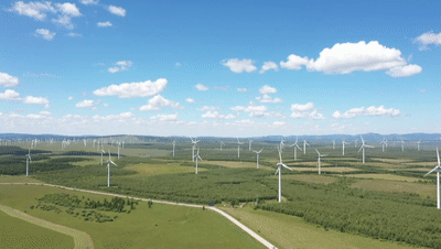△塞罕坝上天气晴好,无数风机在风中转动。(总台记者郭永良拍摄)
