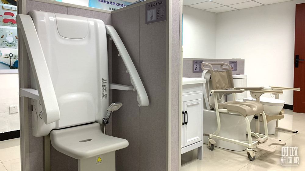 △滨河社区对部分家居用品进行适老化改造,使之符合老年人的身体机能和行动特点。这是壁挂式沐浴器。(总台央视记者程铖拍摄)