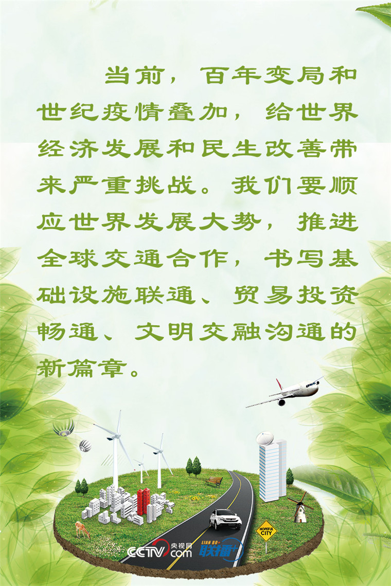 10月14日,习近平主席以视频方式出席第二届联合国全球可持续交通大会开幕式并发表题为《与世界相交 与时代相通 在可持续发展道路上阔步前行》的主旨讲话,深入分析当前世界形势,提出五点倡议,为推进全球交通合作贡献中国智慧。