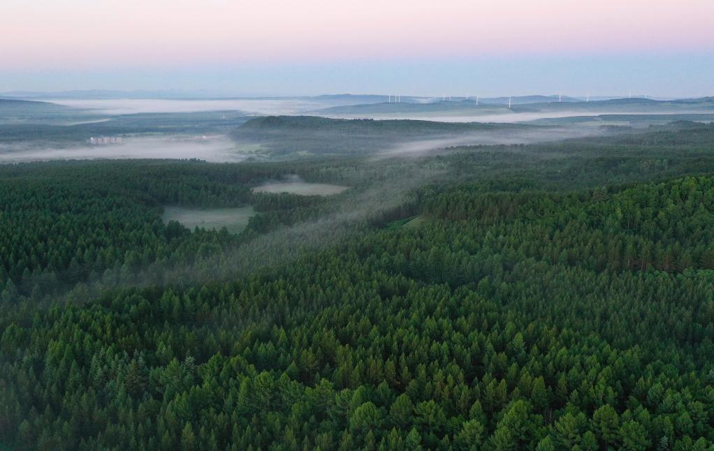 2021年6月27日拍摄的塞罕坝国家森林公园晨景(无人机照片)。 新华社记者 杨世尧 摄
