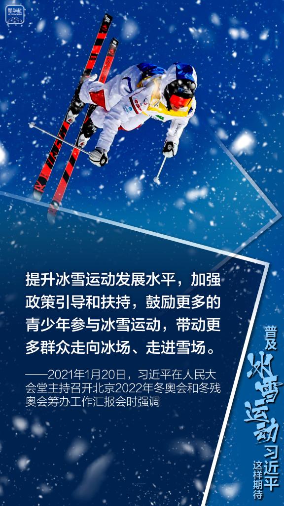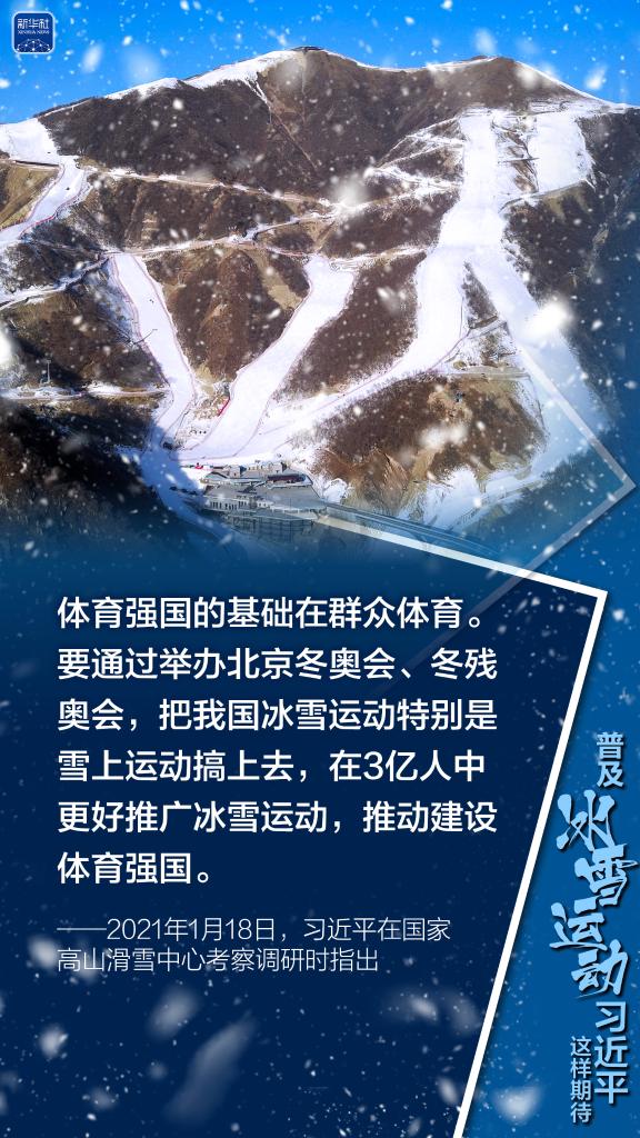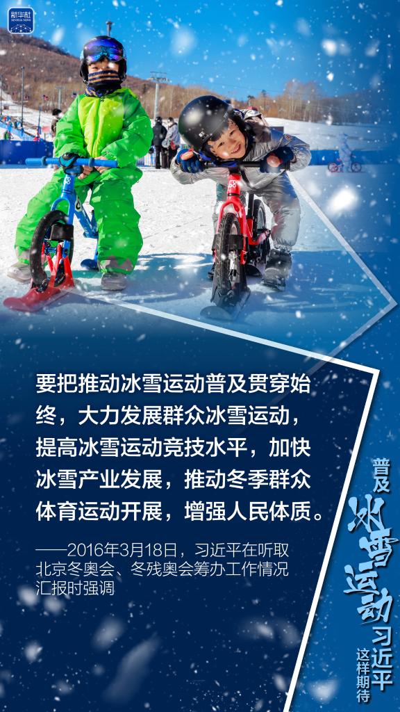 北京携手张家口申办冬奥会以来,习近平在多个场合表达以冬奥会为契机,大力普及冰雪运动的殷切期望。