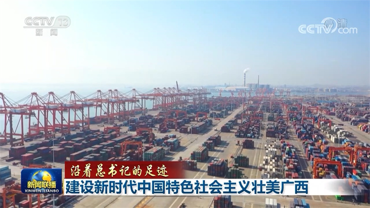 央视网消息(新闻联播):党的十八大以来,习近平总书记先后两次赴广西考察调研,深入港口码头、企业、农村等一线,为新时代广西改革发展领航掌舵。广西各族干部群众紧跟伟大复兴领航人踔厉笃行,着力推动高质量发展,奋力谱写全面建设社会主义现代化国家的广西篇章。
