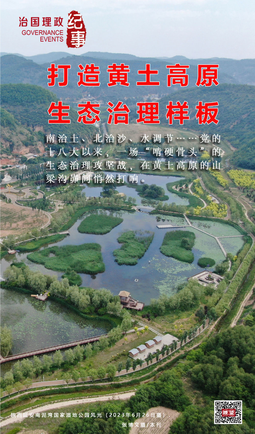 山、川、塬、梁、沟、峁、壑……黄土悠悠百万年。这片广袤而古老的土地,已然碧水蓝天,草木葱郁。