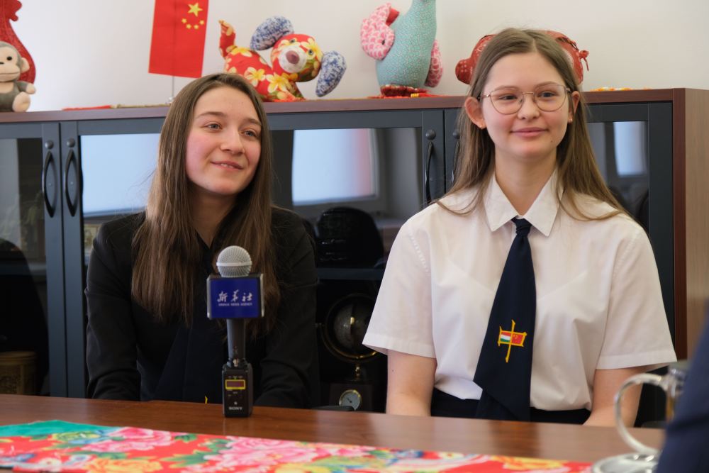 匈中双语学校学生胡灵月(左)和宋智孝在匈牙利首都布达佩斯接受新华社记者采访(2023年2月7日摄)。