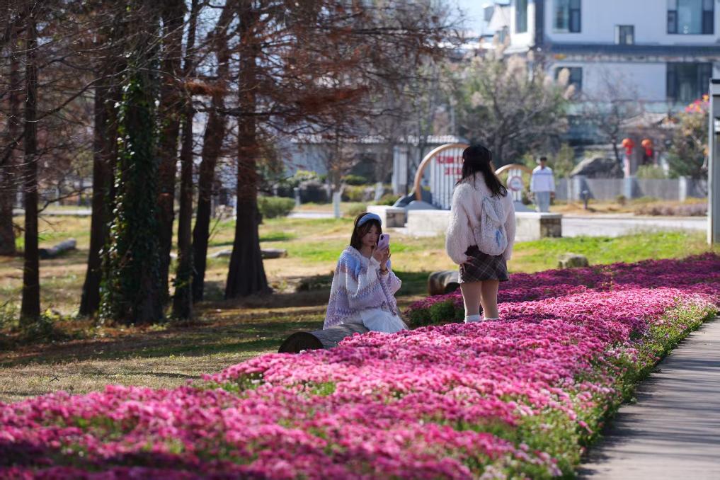 1月17日,游客在古生村生态廊道拍照留念。(赵志伟 摄)