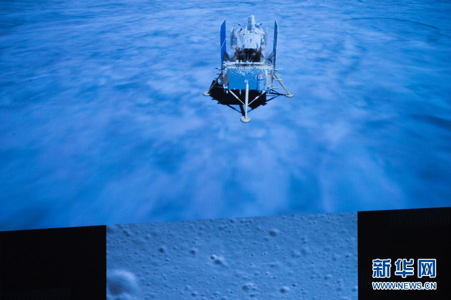 12月1日23时11分,嫦娥五号探测器成功着陆在月球正面西经51.8度、北纬43.1度附近的预选着陆区,并传回着陆影像图。这是在北京航天飞行控制中心拍摄的嫦娥五号探测器落月瞬间。新华社记者 金立旺 摄