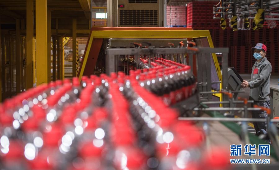 3月24日,工人在复工复产的湖北太古可口可乐饮料有限公司流水线上作业。新华社记者 肖艺九 摄