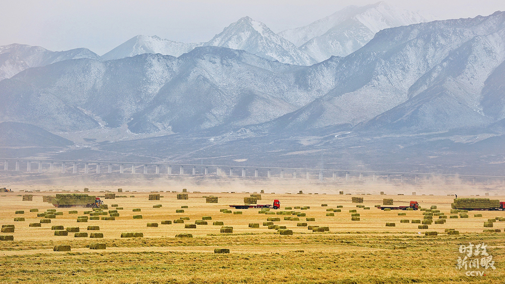 △11月中旬,祁连山下山丹马场20余万亩燕麦草进入收获尾声。各农业单位人机齐上,确保颗粒归仓、寸草归垛。