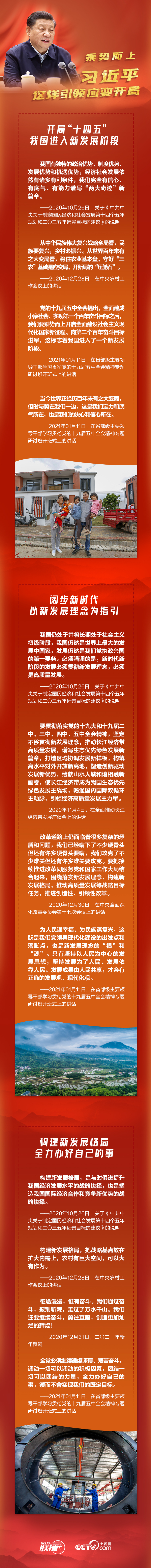 岁末年初,习近平总书记在多个重要会议上深刻分析了新发展阶段面临的时与势,阐述了深入贯彻新发展理念的新要求,为加快构建新发展格局奠定了坚实的思想基础。