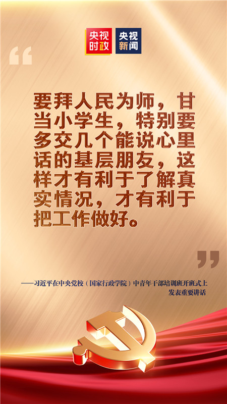 3月1日,习近平在中央党校(国家行政学院)中青年干部培训班开班式上发表重要讲话。一起学金句!↓↓