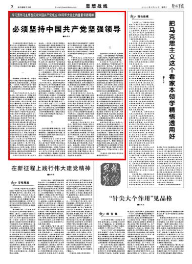 党政军民学,东西南北中,党是领导一切的。一百年光辉历程与丰功伟绩充分证明,历史和人民选择中国共产党领导是正确的,必须长期坚持、永不动摇。