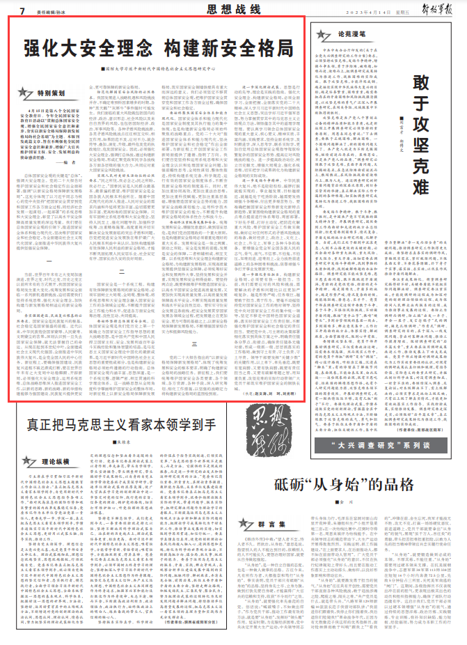 强化大安全理念 构建新安全格局