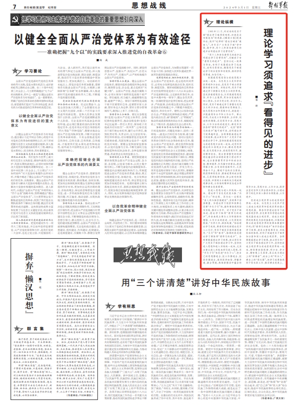 “用个人和单位看得见的进步证明理论学习是管用的”,关键在于有“看得见的进步”。坚持以这一效果为导向,有利于克服理论学习浅表化、功利化等倾向,增强党员干部理论学习的自觉性和有效性,做到学思用贯通、知信行统一。