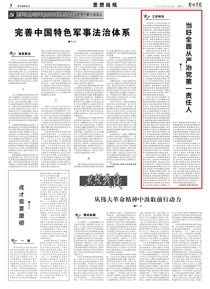 习主席在二十届中央纪委三次全会上强调,各级党委要切实强化对反腐败斗争全过程领导,坚决支持查办腐败案件,动真碰硬抓好问题整改。这一重要指示,既是对纵深推进全面从严治党的战略部署,也是对各级党委担当履行管党治党责任的严肃号令。党委主要领导在本单位本部门全面从严治党责任链条中肩负首责,必须自觉把管党治党责任扛上肩头、抓在手中、落到实处,在严管所辖中当好全面从严治党第一责任人。