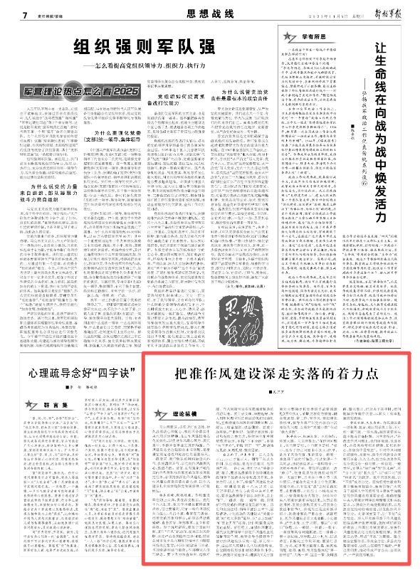 习主席强调,必须以打攻坚战、持久战的决心和恒心,锲而不舍落实中央八项规定精神,推进作风建设常态化长效化,以优良作风凝心聚力、真抓实干,不断开创事业发展新局面。作风建设是党的建设的永恒课题,是衡量党的先进性和纯洁性的重要标尺。一路走来,我们党以铁腕纠治歪风邪气,弘扬清风正气,以优良作风凝聚民心、锻造队伍。当前,面对复杂严峻的国内外形势和艰巨繁重的改革发展稳定任务,必须持续深化作风建设,把准作风建设深走实落的着力点,以作风建设扎实成效确保党和国家事业行稳致远。