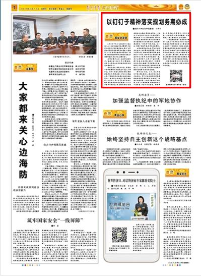“一张蓝图绘到底”“发扬钉钉子精神”,这是以习近平同志为核心的党中央在推进中国特色社会主义事业的伟大征程中一再强调的干事创业精神。军事战略规划既是发展的“路线图”,也是行动的“铁规矩”,我们必须按照时间节点和任务要求,以钉钉子精神清“淤点”、通“堵点”、解“难点”,瞄准目标不动摇,逐梦强军不松懈,整合优质资源,协调各方力量,扎实有序推进各项建设。